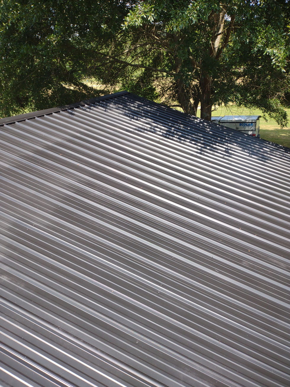 Experience the process of cleaning and coating metal roofs, from power washing to fresh black coating. These images capture the beauty of metal roofs against rural and suburban backdrops.
